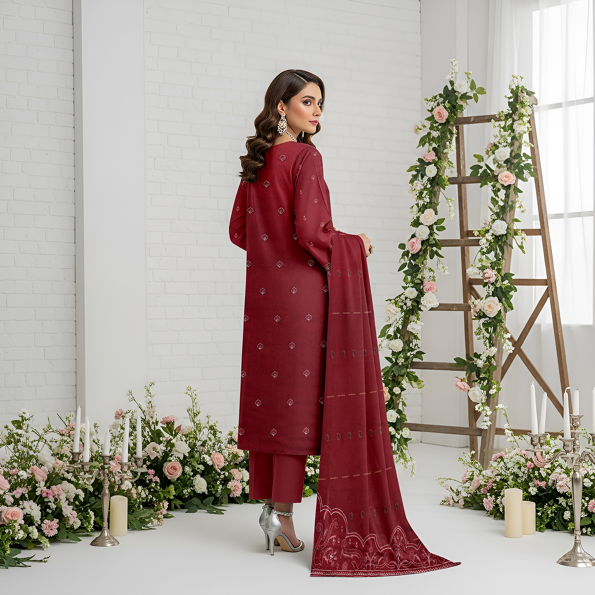 Dupatta: Embroidered lawn jacquard dupatta