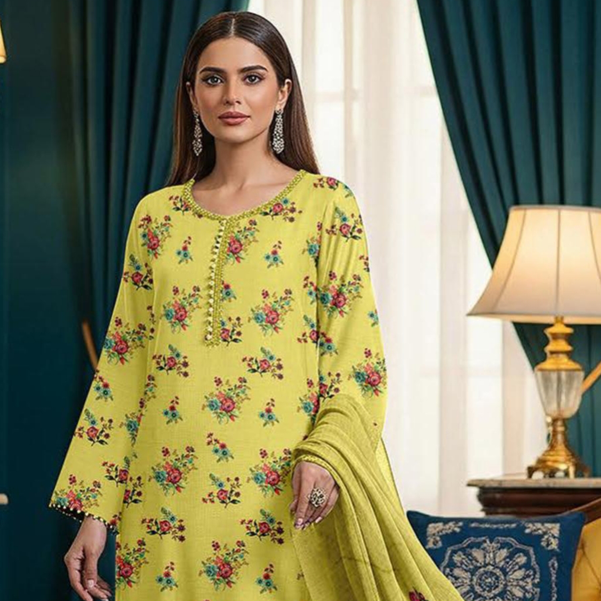Crafted from breathable printed lawn fabric and finished with delicate embroidery on the daman, this outfit offers a refined yet comfortable look. The clean prints and light embellishment make it ideal for summer days and casual gatherings.